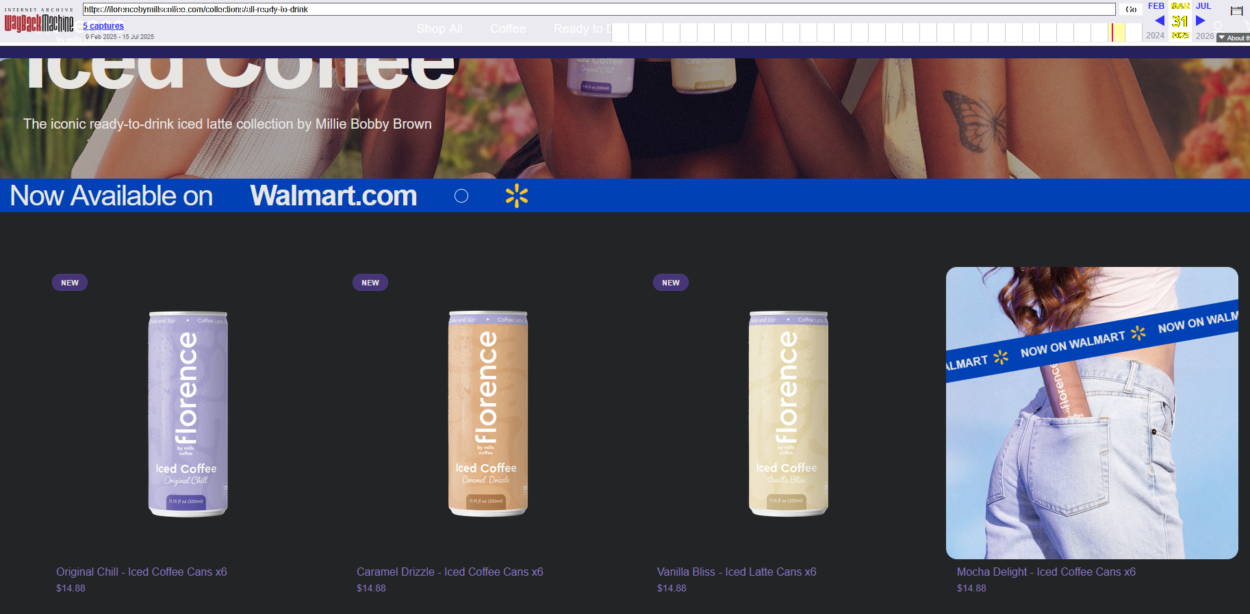 I am E-Z to please, just get me a < $3 can of coffee for Christmas. That’s coming up, right? [LQQKS at calendar] “Huh.” Well, Arbor Day. Anyway, I was buying up fat stacks of some coffee ($1/can) from Grossout, not really knowing what it is. I just read the ingredients, took a ballpark guess at caffeine % (not listed, but lower than normal, turns out), went w/a can a day. Many cans later, finally looked on the bottom. MFG 2025 EXP 2026. Okay, so a company died or something. “Florence By Mills Coffee.” What in the Sam By Hill is that name. Main URL is tot. More research. Blah blah actor blah. Okay. More. Oh. It’s Eleven from Stranger Things, a show I’ve seen approximately seven minutes of many years ago. So. Stapling everything together, looks like this coffee jazz took a dive mid-2025, and they dumped the remaining cans on the secondary market. The fun reason I mention this is because there are five skabillion articles about the celebrity starting various businesses and zero articles about any of those things ending. Except now, you’re in the know. It’s a service I provide. I might be wrong. But if there’s no website for six months and Walmart is out of stock of every flavor ... going with dead. I still have some cans left. To the Ebaymobile!