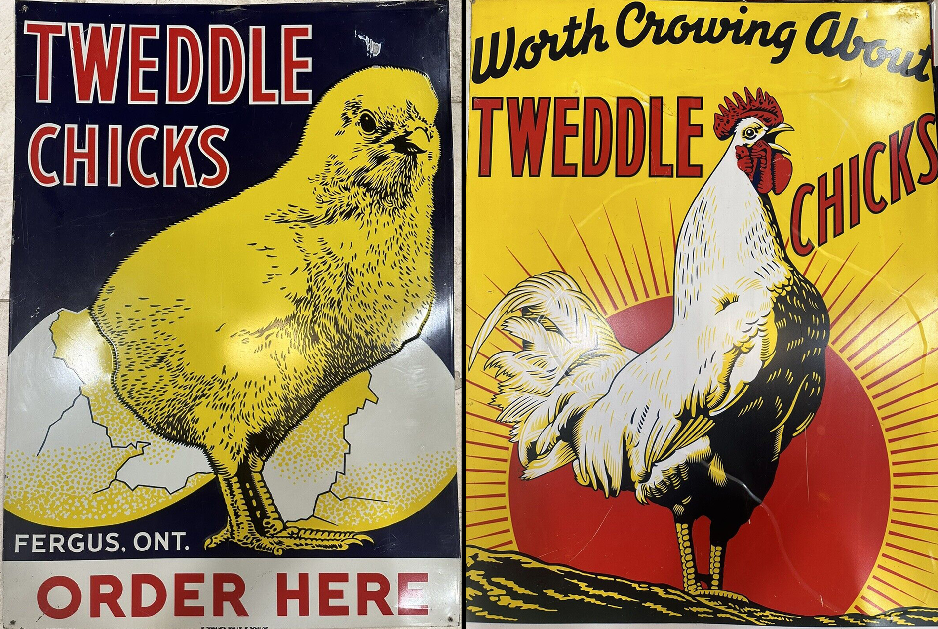 Tweddle chicks comin’ to your town. Vintage TWEDDLE CHICKS FEED Tin Sign Original Rare Rooster Crow Double Sided WOW. I like this a lot but I don’t have any room and I’m in the process of throwing so many things out the window and also $$$$$$$$$. Perhaps you would enjoy THE TWEDDLE CHICKS.