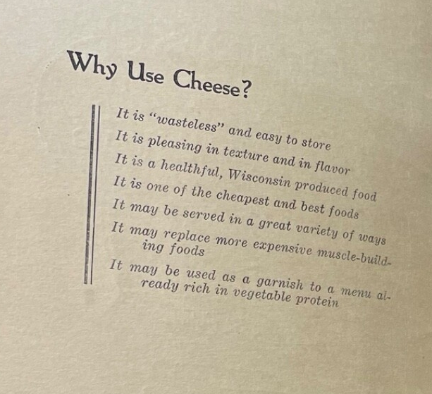 Cheese in the Home, November 1930, Extension Service of the College of Agriculture, University of Wisconsin. Inner front cover.
