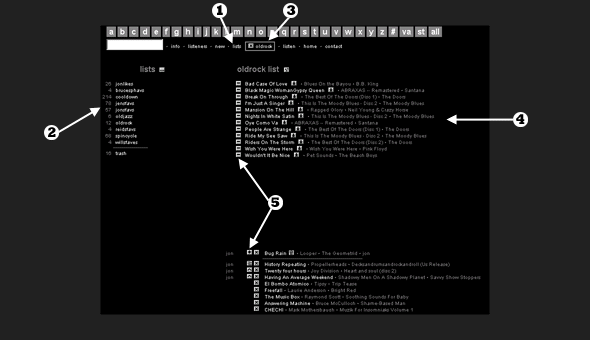 on a list name also causes the songs in that list to be shown here.